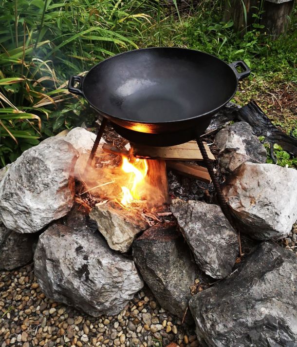 bogrács, állvánnyal